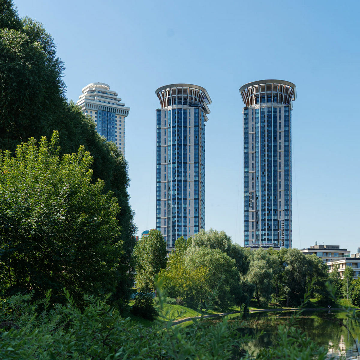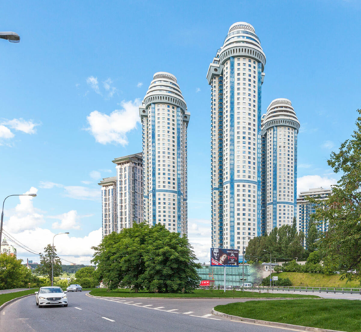 ЖК Дом на Мосфильмовской находится в спокойном и тихом районе среди парков и аллей, вдалеке от крупных автострад, по адресу улица Мосфильмовская, 8. Из окон верхних этажей этого уникального комплекса жилых небоскребов открываются великолепные виды на центр столицы, МГУ, Лужники, Поклонную гору и ММДЦ Москва-Сити. ЖК неоднократно удостаивался престижных премий в сфере архитектуры и недвижимости, в 2012 году он занял 5-ое месте в списке самых лучших небоскребов во всем мире.
