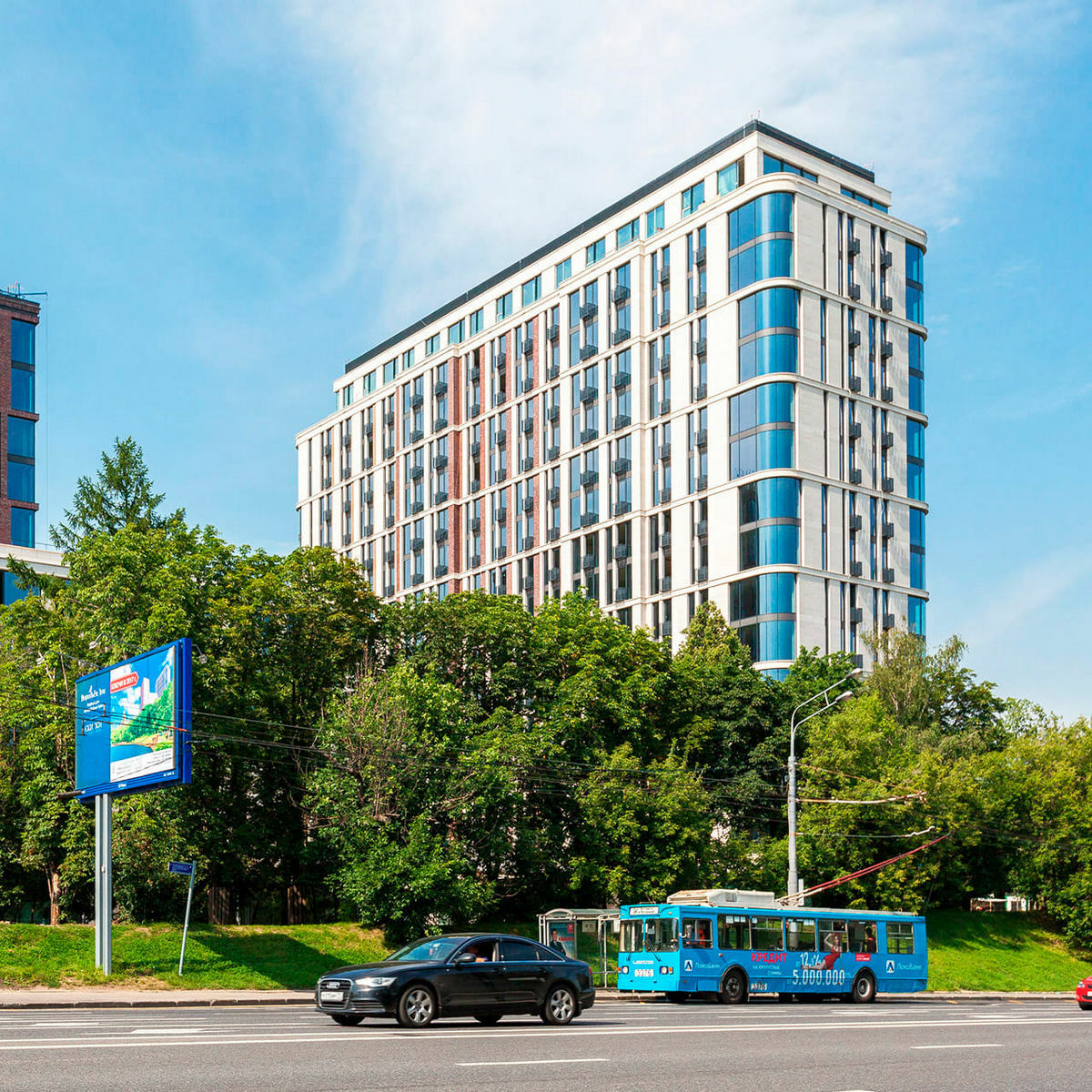 Жилой комплекс представлен в виде двух небоскребов, объединенных друг с другом общей секцией. Высотки выполнены в разных стилях, однако идеально сочетаются друг с другом, создавая единую, неповторимую архитектуру. ЖК был построен в 2011 году по проекту Сергея Скуратова. Фасады корпусов отделаны мрамором, который отлично смотрится в сочетании с большими площадями остекления. Вы можете купить квартиру в ЖК Дом на Мосфильмовской площадью 59-355.1 кв.м. Количество комнат может варьироваться от 1 до 4. На выбор предлагаются лоты с готовым ремонтом, а также без чистовой отделки. Высота потолков в квартирах составляет 3.3 – 3.9 метров. В зависимости от площади и наличия отделки квартиры, цены в ЖК Дом на Мосфильмовской в Москве варьируются в широком диапазоне.